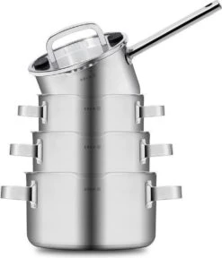 Deze 4-delige RVS pannenserie van Herman den Blijker bestaat uit: